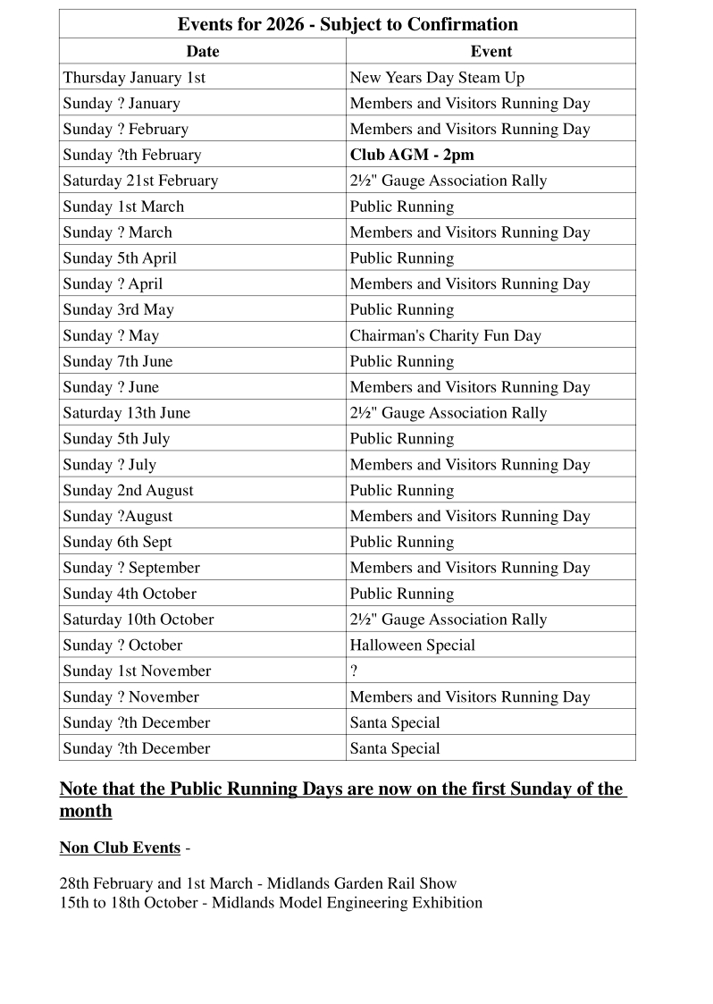 Public running times - April to October - 12pm till 4pm November, December and March - 12pm till 3pm There is no public running in January and February